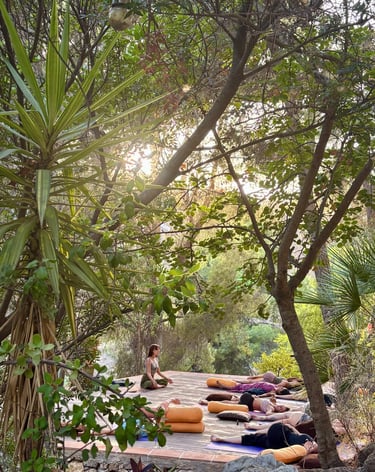 Tucked in the wild hills of Andalucía, surrounded by olive trees and pine-scented air — this is a space where nature holds you. Practice under open skies, rest in quiet corners, float in the pool, and breathe with the land.